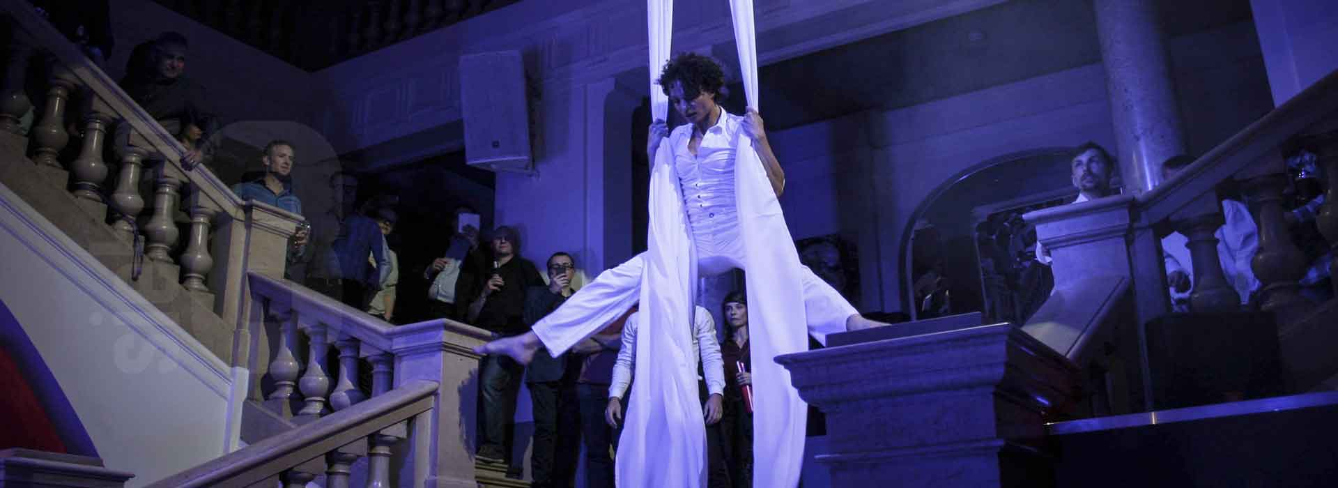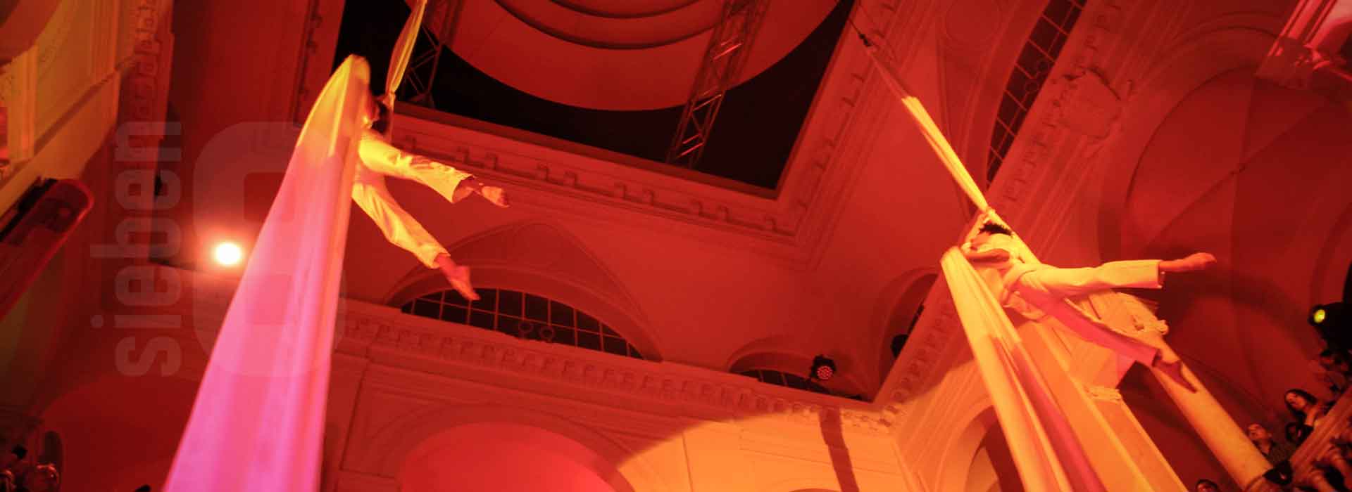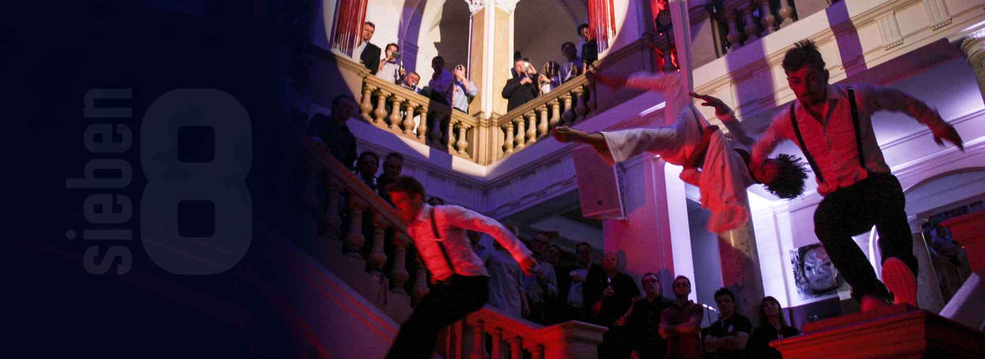 On the occasion of IFFA 2016, Devro invited 550 international guests to the Kameha Suite in Frankfurt. sieben8 leveraged this extraordinary location with its railings and stairs as well as a ceiling height of incredible 18 metres for staging an impressive storytelling performance. Combining SHOW ACTS such as dual aerial acrobatics (cloth / rope), floor acrobatics, and show-jumping course / free-running, guests were able to enjoy an action-filled performance at breathtaking speed – the perfect opening to a long Kameha party night!