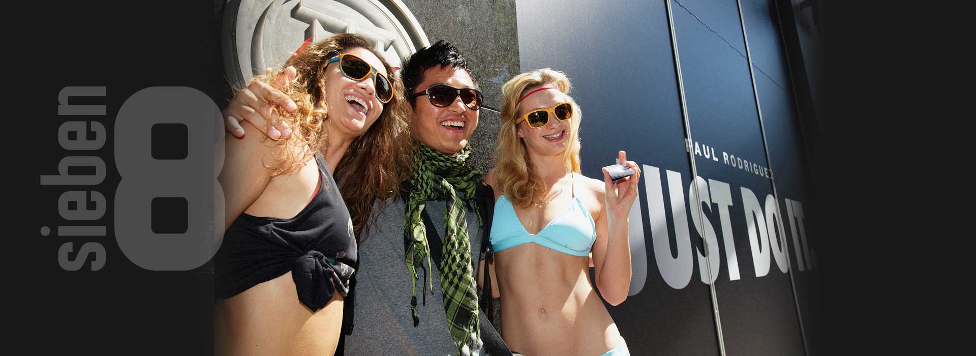 Six surfer girls and boys spent an entire day showcasing the casual beach and surf outfits and encouraging motivated and courageous surfers and skaters to take part in the Crew Video Contest – all perfectly in line with the motto: 5…6…sieben8… "Just do it".